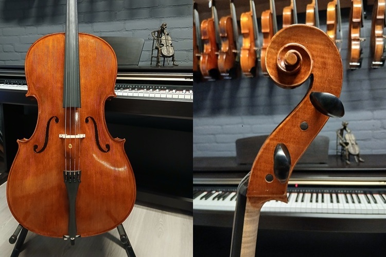 Al een aantal jaar werk ik samen met een vioolbouwer uit Roemenië. Hij bouwt hele mooie instrumenten volgens de traditie van de Italiaanse vioolbouw. In juli heb ik weer een cello van hem overgenomen. Het is een kopie van de beroemde Napolitaanse bouwers familie Gagliano. Ik heb zelf de montage gedaan, sleutels, kam, stapel zijn in mijn atelier gemaakt.